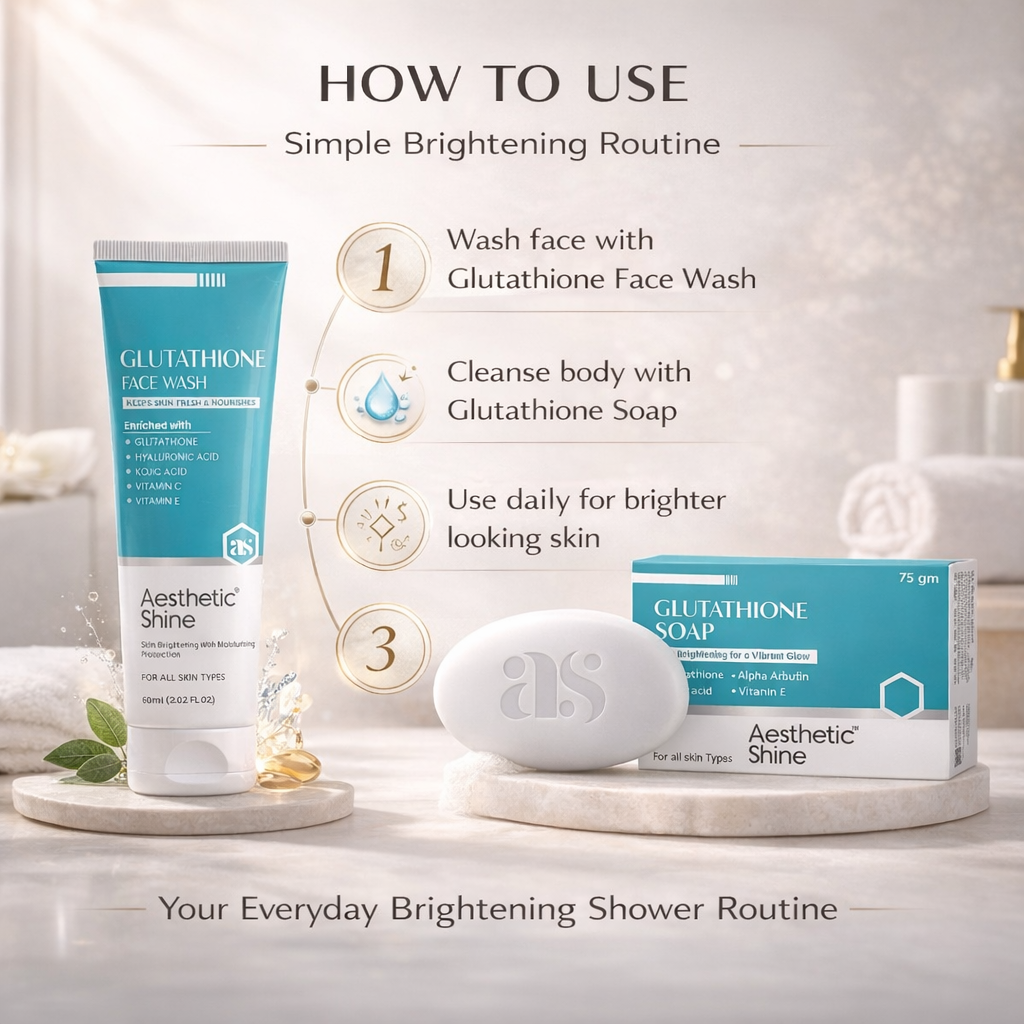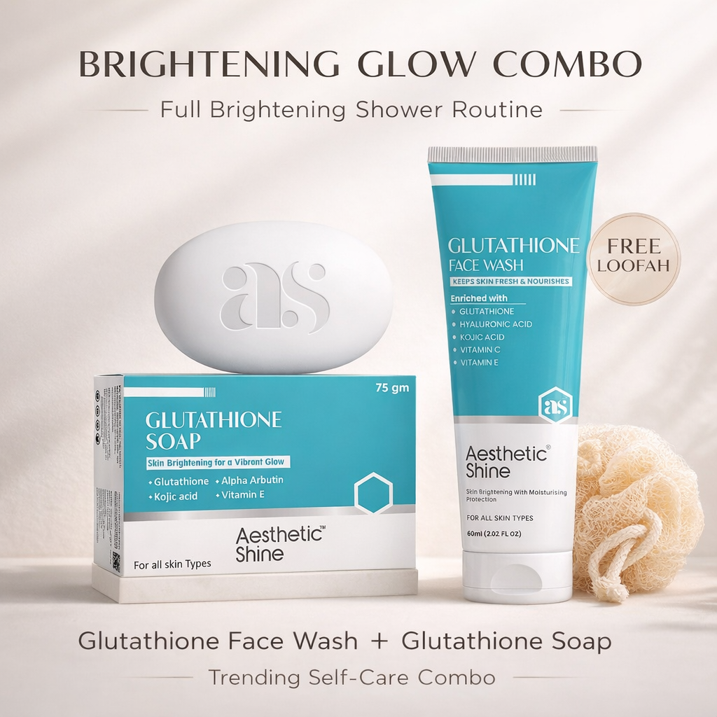 Experience a complete face and body brightening routine with the Aesthetic Shine Brightening Glow Combo. Specially designed for daily skincare, this combo combines the benefits of Glutathione Face Wash and Glutathione Soap to help improve skin clarity, hydration and overall glow.